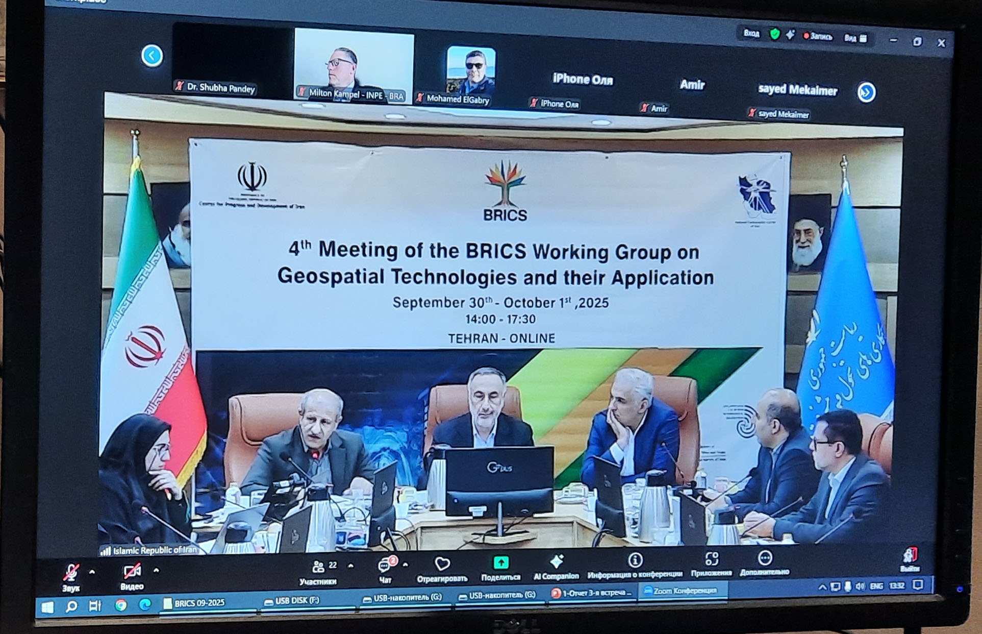 30 сентября – 1 октября 2025 г. состоялось 4-е заседание Рабочей группы стран БРИКС по геопространственным технологиям и их применению. В этой встрече от НИИ «АЭРОКОСМОС» приняли участие: