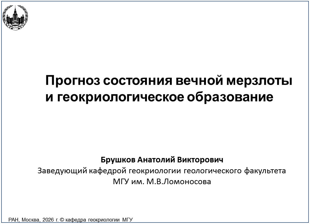 Брушков Анатолий Викторович - профессор, заведующий кафедрой геокриологии МГУ - (Прогноз состояния мерзлоты и геокриологическре образование РФ»